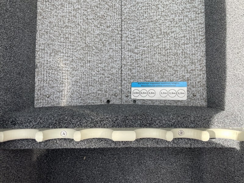 Stockage central des cannes dans le pont pour six cannes de 250-270 cm de long