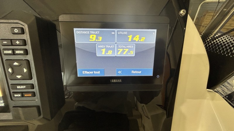 Ce Tempest 700 millésime 2023 est motorisé avec un Yamaha F 200 XCA (commande électrique) avec seulement 78 heures de navigation.