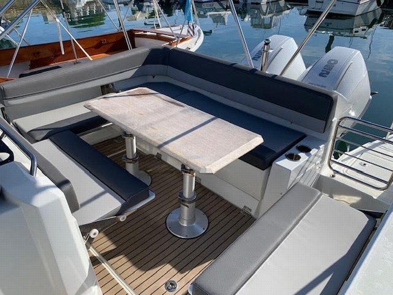 Doté d’une nouvelle carène en V signée Michael Peters, et d’une bi-motorisation Mercury Verado 2 x 250Cv (seulement 140 heures de navigation), avec une accélération rapide et un déjaugeage à vitesse réduite, ce Cap Camarat 9.0 WA ravira les amateurs de sensations fortes et de traversées express, cheveux au vent, avec des pointes à plus de 40 nœuds.